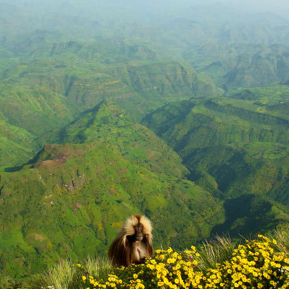 Le Parc national des Montagnes Simien, situé dans le nord de l'Éthiopie, est une région montagneuse exceptionnelle classée au patrimoine mondial de l'UNESCO en raison de sa beauté naturelle et de son importance géologique. Des formations rocheuses spectaculaires, des vallées profondes, des falaises vertigineuses et des plateaux élevés créent des panoramas à couper le souffle. Le Ras Dashen, le plus haut sommet d'Éthiopie, culmine à 4 550 mètres dans ce parc. Le parc abrite une biodiversité remarquable, on peut y trouver des babouins geladas, également appelés babouins de la Gelada, qui sont des primates uniques se nourrissant d'herbe. Le parc est également un refuge pour le loup d'Abyssinie, une espèce de loup africain en danger d'extinction. Le parc est parsemé de gorges profondes, de vallées verdoyantes et de formations rocheuses impressionnantes. La Gorge du Jinbar est l'une des caractéristiques notables du parc. En plus de sa beauté naturelle, le parc a une importance culturelle. Les montagnes étaient autrefois un refuge pour les ermites et les monastères tels que Debre Damo, situé à proximité, ajoutent une dimension culturelle à la région.